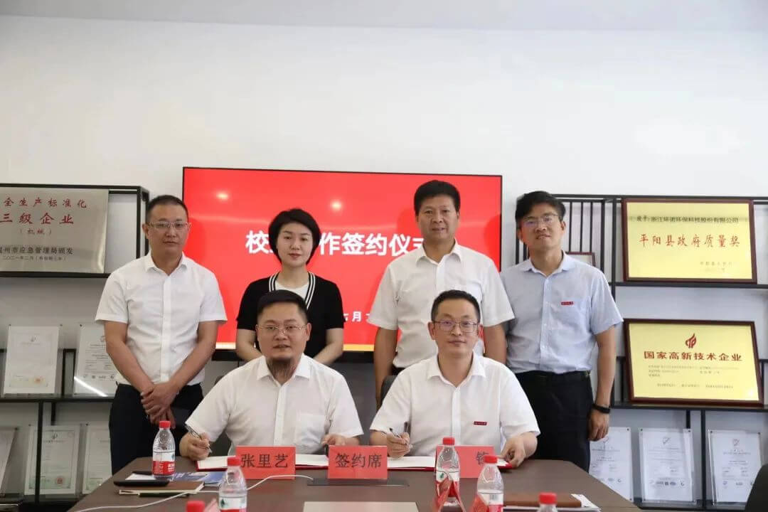 Впоследствии представитель школы подписал соглашение о сотрудничестве школьного предприятия с представителем нашей компании и вручил «Кооперативную базу стажировки школьного предприятия», ознаменовав официальное открытие сотрудничества школьного предприятия между Vnor Environmental Protection и Вэньчжоуским университетом.
