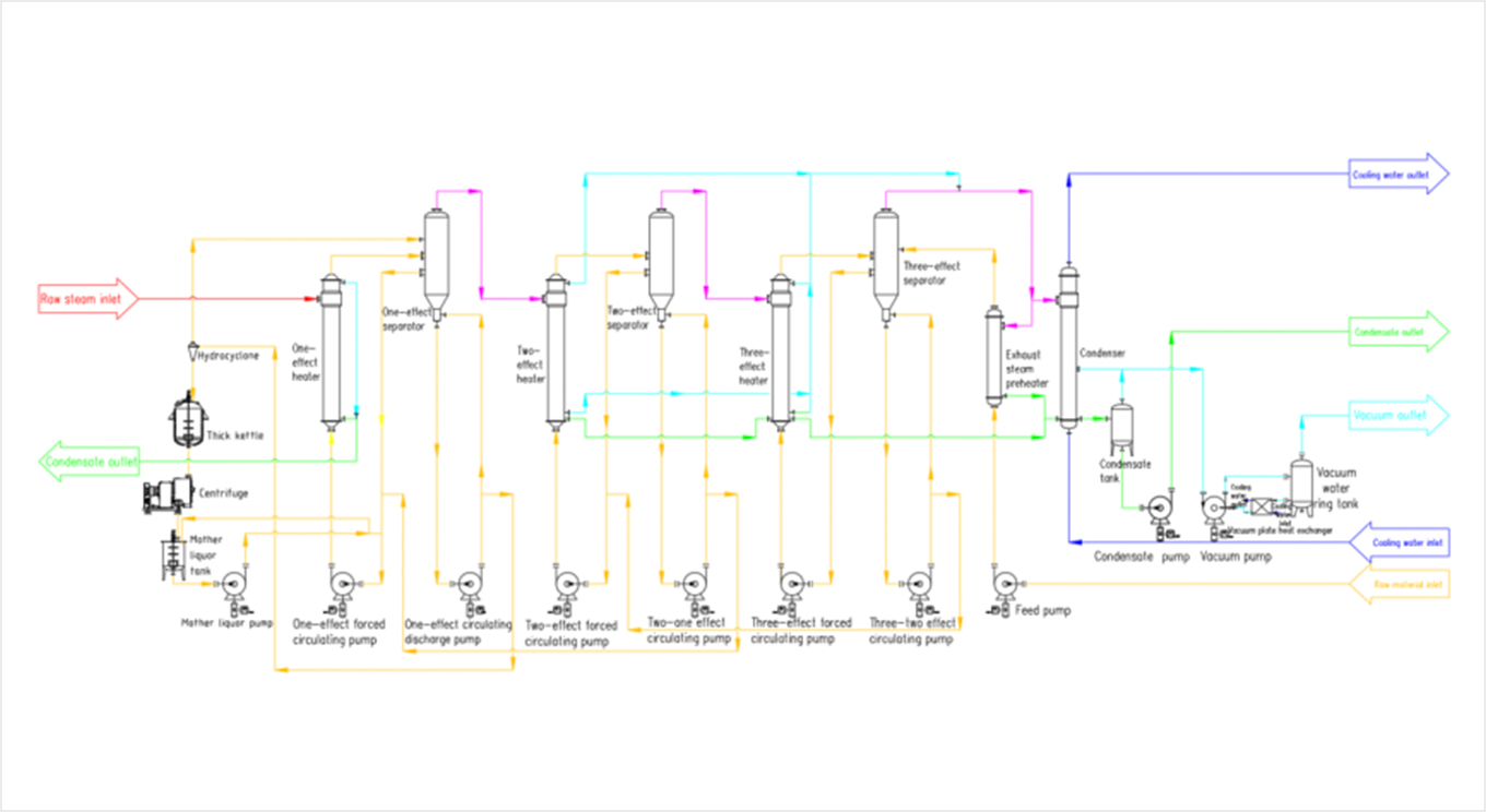 Многоступенчатое испарение — это традиционная энергосберегающая технология испарения, которая снижает энергопотребление системы за счет использования энергии на один нагрев.Пар в основном потребляет энергию при многоступенчатом испарении, особенно подходит для условий эксплуатации, где пара достаточно, а мощность невелика.Он широко используется при испарении, концентрировании, кристаллизации и очистке сточных вод во многих отраслях промышленности, таких как медицина, пищевая промышленность, химическая промышленность, полиграфия и окрашивание и т. д.
